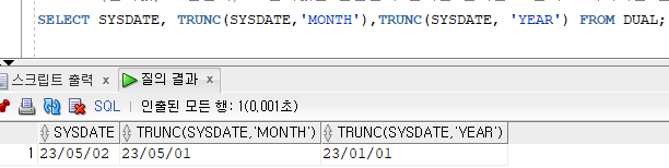 TRUNC(날짜값, 표현단위)