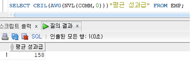 >> 검색 오류 : 성과급이 NULL이 아닌 사원의 평균 성과급 계산
