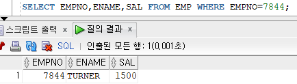 EMP 테이블에서 사원번호가 7844인 사원의 사원번호,사원이름,급여 검색