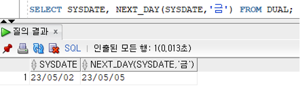 NEXT_DAY(날짜값, 요일)