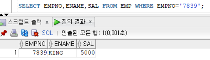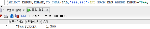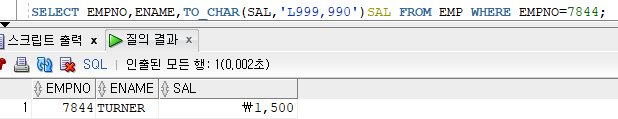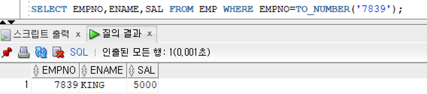 비교 컬럼의 자료형이 숫자형인 경우 비교값이 문자값이면 TO_NUMBER 함수를 사용하여 문자값을 숫자값으로 변환하여 반환받아 비교가 가능하다 - 강제 형변환
