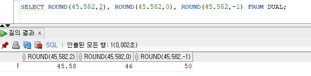 ROUND(숫자 값, 소수점 자릿수)
