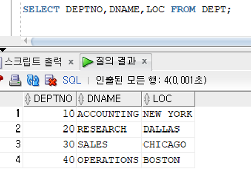 DEPT 테이블에 저장된 모든 부서의 부서번호,부서이름,부서위치 검색