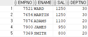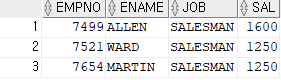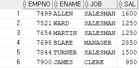SELECT EMPNO,ENAME,JOB,SAL FROM EMP