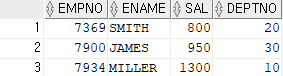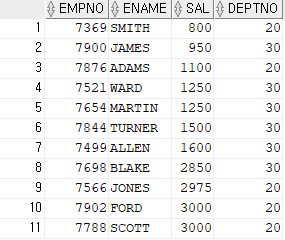 SELECT EMPNO,ENAME,SAL FROM EMP;