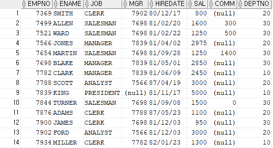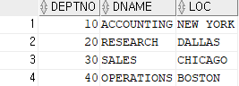 SELECT DEPTNO, DNAME, LOC FROM DEPT; --검색결과 : 10,20,30,40