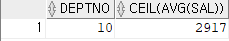 SELECT DEPTNO,CEIL(AVG(SAL)) FROM EMP GROUP BY DEPTNO