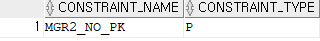 SELECT CONSTRAINT_NAME,CONSTRAINT_TYPE FROM USER_CONSTRAINTS WHERE TABLE_NAME='MGR2';