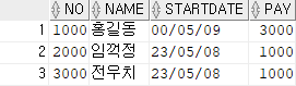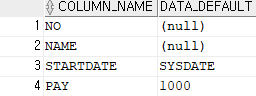 ,STARTDATE DATE DEFAULT SYSDATE,PAY NUMBER DEFAULT 1000);
