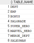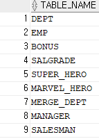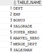 SELECT TABLE_NAME FROM USER_TABLES;