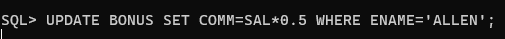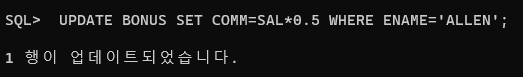 예시) BOUNUS 테이블에서 사원이름이ALLEN 인 사원의 급여를 2000으로 변경