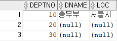 INSERT INTO DEPT1(DEPTNO) VALUES(30); --묵시적 NULL 사용
