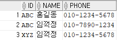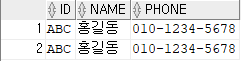 INSERT INTO USER4 VALUES('ABC','임꺽정','010-7890-1234');--아이디 중복 가능