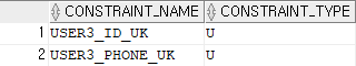 ,CONSTRAINT USER3_ID_UK UNIQUE(ID),CONSTRAINT USER3_PHONE_UK UNIQUE(PHONE));