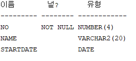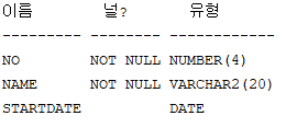 CREATE TABLE SALESMAN(NO NUMBER(4), NAME VARCHAR2(20),STARTDATE DATE);