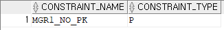 SELECT CONSTRAINT_NAME,CONSTRAINT_TYPE FROM USER_CONSTRAINTS WHERE TABLE_NAME='MGR1';