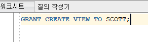 시스템 관리자(SYSDBA - SYS 계정)로 접속하여 현재 접속 사용자(SCOTT)에게 CREATE VIEW 시스템 권한을 부여