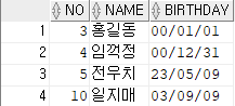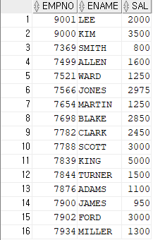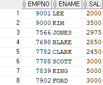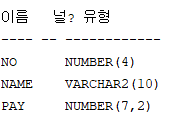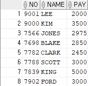 컬럼명이 NO,NAME,PAY로 변경된 것을 확인할 수 있다.