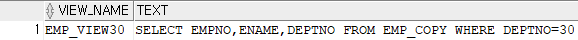 CREATE VIEW EMP_VIEW30 AS SELECT EMPNO,ENAME,DEPTNO FROM EMP_COPY WHERE DEPTNO=30;--단순뷰