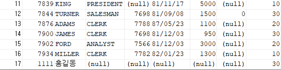 INSERT INTO TRAINEE3 VALUES(1000,'홍길동',10);