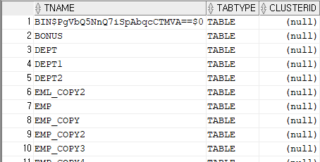 CREATE TABLE EMP_COPY AS SELECT * FROM EMP;