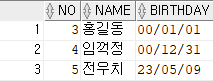 INSERT INTO USER2 VALUES(USER2_SEQ.NEXTVAL,'홍길동','00/01/01');
