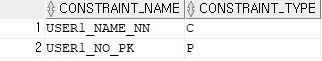 SELECT CONSTRAINT_NAME,CONSTRAINT_TYPE FROM USER_CONSTRAINTS WHERE TABLE_NAME='EMP_COPY';