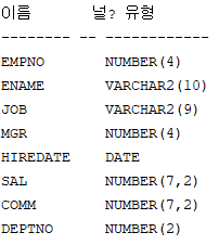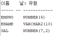>> 원본 테이블과 타겟 테이블의 속성은 동일하기 때문에 EMP 테이블과 EMP_COPY 테이블의 구조는 같다.