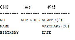 CREATE TABLE USER2(NO NUMBER(2) CONSTRAINT USER2_NO_PK PRIMARY KEY,NAME VARCHAR2(20),BIRTHDAY DATE);
