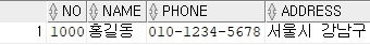 INSERT INTO TRAINEE1 VALUES(1000,'홍길동',10);