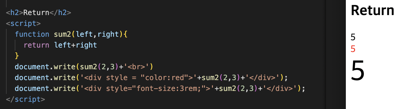 함수의 결과 값을 되돌려줌.