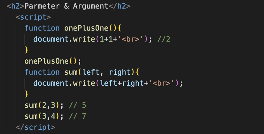 즉, 매개변수는 인자 값을 받아서 함수 안으로 매개해주는 변수.