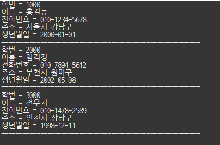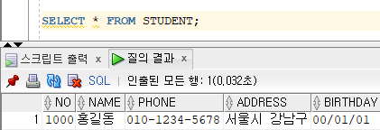 //String sql="insert into student values(1000,'홍길동','010-1234-5678','서울시 강남구','00/01/01')";