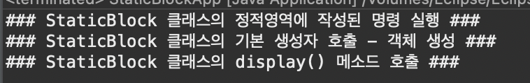 System.out.println("### StaticBlock 클래스의 정적영역에 작성된 명령 실행 ###");