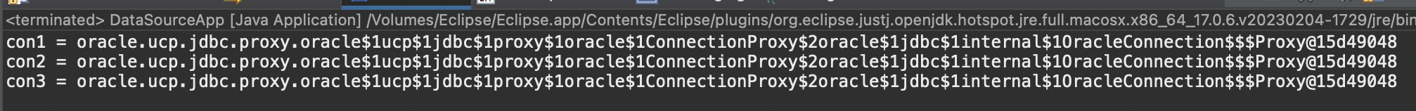 //PoolDataSource 객체(DBCP 객체)에 저장된 Connection 객체 중 하나를 반환하는 메소드