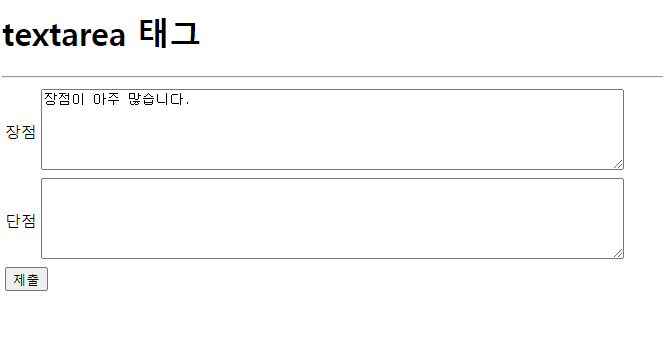 <h1>textarea 태그</h1>