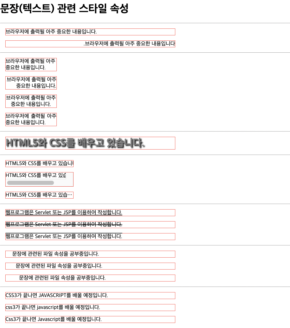 <h1>문장(텍스트) 관련 스타일 속성</h1>