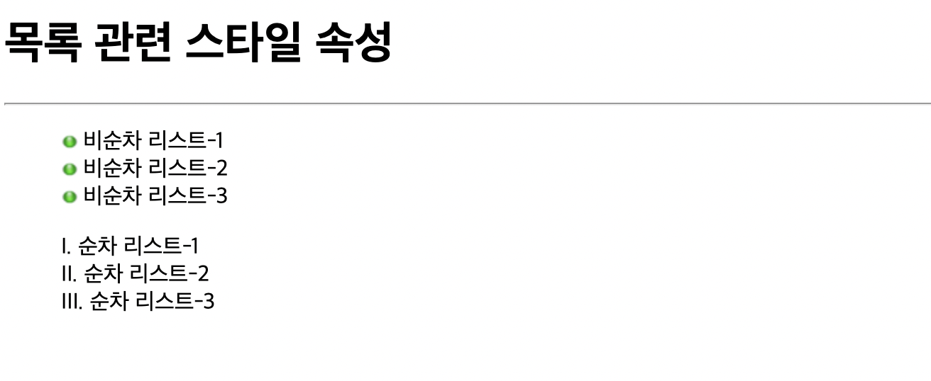 <h1>목록 관련 스타일 속성</h1>