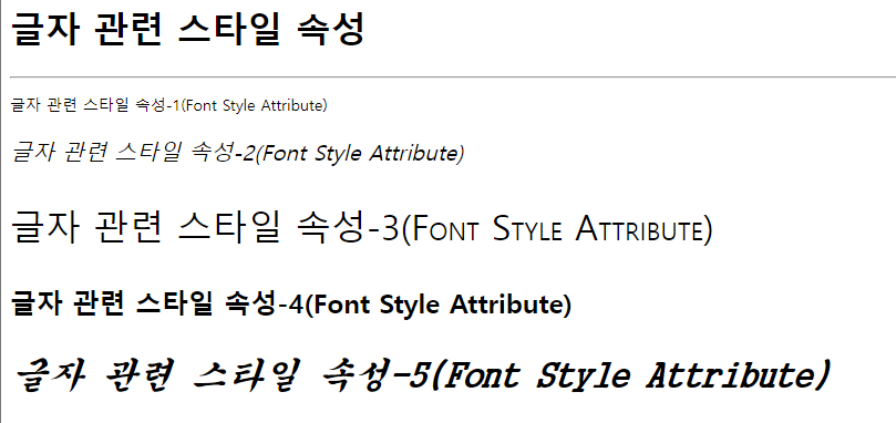 <p class ="font5">글자 관련 스타일 속성-5(Font Style Attribute)</p>