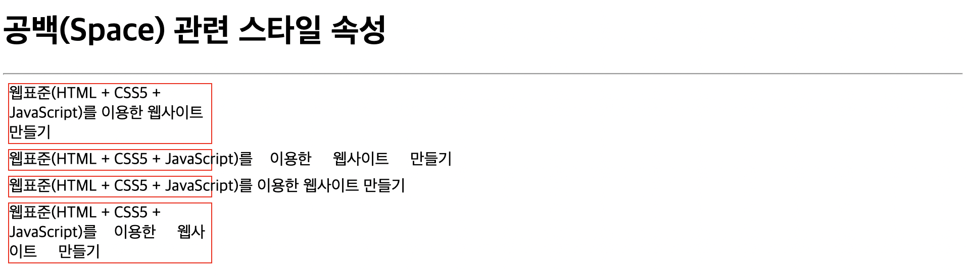 공백(Space) 관련 스타일 속성