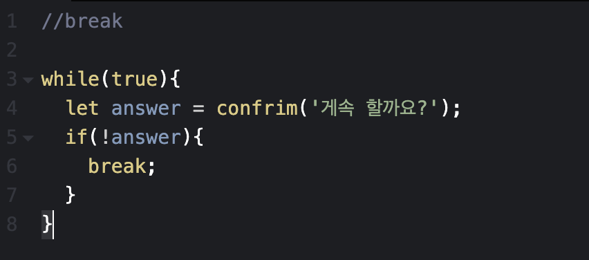 break : 즉시 코드 실행을 멈추고 해당 반복문을 빠져나옴
