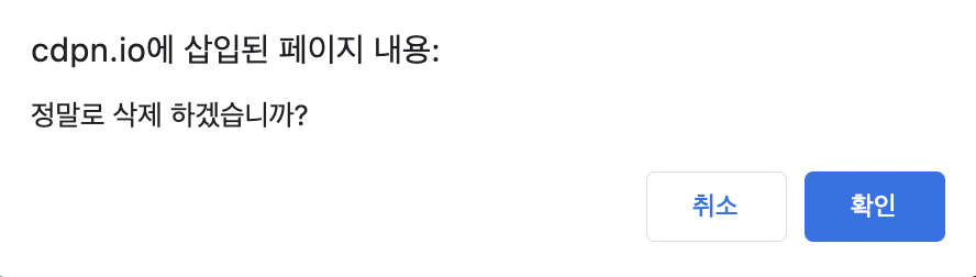 → 확인창에서 [취소]를 선택하면 [false]를 반환하고 [확인]을 선택하면 [true]를 반환한다.